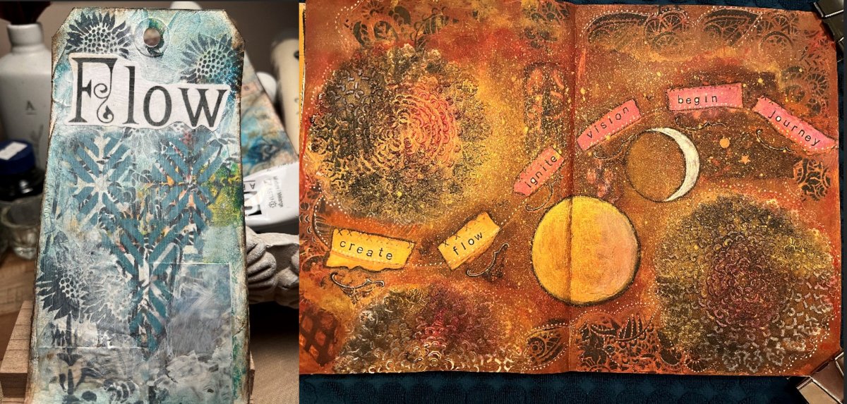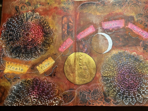 Over the course of the pandemic, art journaling has become an evening meditation and weekend ritual for me. I have found it to be a way to focus my mind and often, make order out of chaos (both inner, and outer). Playing and dabbling, often making mistakes, if the design doesn’t look quite right, I can just add an extra layer - and this in turn, results in more depth and interest to the page. I often find myself in a state of flow where hours would pass without noticing, and my mind always seemed less agitated then when I began.