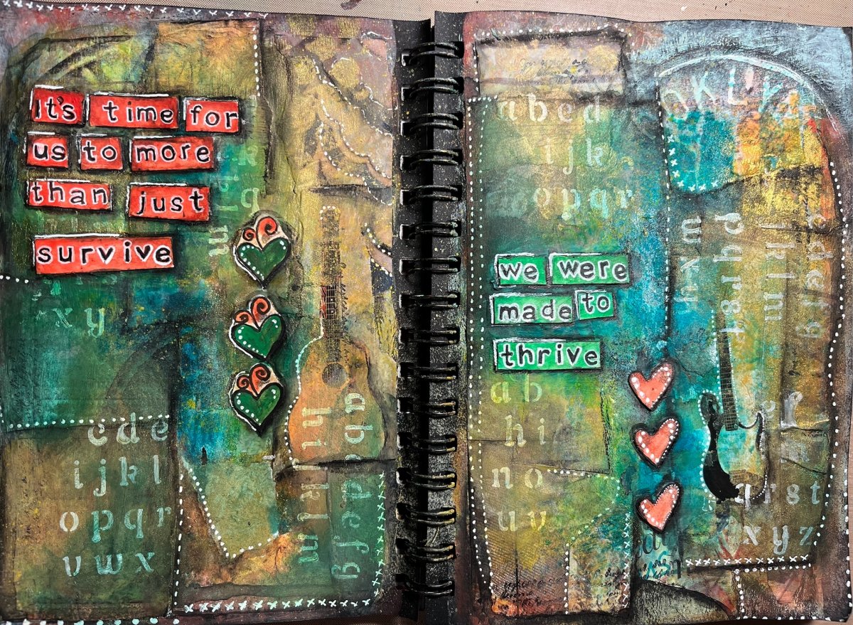 With art journaling, there’s no need to share your work, so that is also quite freeing. Still, I have enjoyed connecting with an incredible positive community of art journalists on social media, all generously offering techniques, inspiration and encouragement for each other.